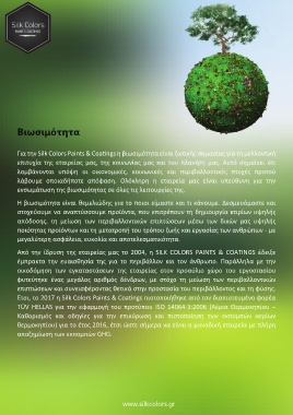 Για την Silk Colors Paints & Coa�ngs η βιωσιμότητα είναι ζωτικής σημασίας για τη μελλοντική
